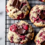 Delightfully soft and chewy Raspberry Chocolate Chunk Cookies combine the rich depth of dark chocolate chunks with the bright tartness of frozen raspberries. These homemade cookies are perfect for a sweet treat or sharing with friends and family, offering a perfect balance of fruity and chocolaty flavors baked to golden perfection.