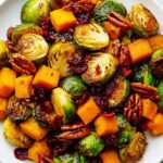 A delicious and festive Thanksgiving side dish combining roasted Brussels sprouts and cinnamon-spiced butternut squash, topped with toasted pecans and dried cranberries. This recipe offers a perfect balance of savory, sweet, and nutty flavors, ideal for holiday celebrations or a nutritious autumn meal.