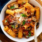 Pasta alla Norma is a classic Sicilian pasta dish featuring tender roasted eggplant, flavorful marinara sauce, and fresh basil, all tossed with your choice of pasta and topped with salty ricotta salata or Parmesan cheese. This recipe blends roasted vegetables with a rich tomato sauce for a comforting, satisfying meal.