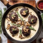 This Rosemary Beef Tenderloin with Wild Mushroom Cream Sauce is an elegant and flavorful centerpiece perfect for a Christmas dinner. Juicy beef tenderloin steaks are infused with fresh rosemary and garlic, seared for a flavorful crust, and oven-roasted to a perfect medium-rare. They are paired with a rich, creamy wild mushroom sauce enhanced with shallots, Dijon mustard, white wine, and Parmesan, creating a luxurious dish that’s sure to impress your holiday guests.