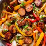 This Sausage and Peppers Skillet is a flavorful and hearty one-pan meal featuring spicy andouille sausage sautéed with colorful bell peppers and onions, seasoned with Italian herbs and garlic. Perfect for a quick weeknight dinner, it can be served alone or over rice or noodles for a satisfying and delicious meal.