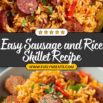 This Sausage and Rice Skillet is a hearty and flavorful one-pan meal featuring smoky sausage, sautéed bell peppers and onions, and tender cooked rice all simmered together in a savory tomato and spice sauce. Perfect for a quick weeknight dinner, this dish combines vibrant vegetables, rich spices, and satisfying protein to deliver comforting Southern-style flavors in under 30 minutes.