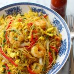 Singapore Rice Noodles is a vibrant and flavorful stir-fried noodle dish featuring delicate rice stick noodles, succulent shrimp, Chinese roast pork, and fresh vegetables, all tossed in a fragrant curry-spiced sauce. This recipe balances the mild sweetness of roast pork with the warmth of curry powder, accented by the freshness of snow peas, bell peppers, and scallions for a quick and satisfying meal inspired by Southeast Asian cuisine.