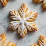 Delightful snowflake-shaped cookies with a tender, buttery texture and a subtle hint of vanilla and almond. Perfectly dusted with powdered sugar for a festive, snowy finish. These charming treats are ideal for holiday gatherings and make a beautiful addition to any cookie platter.