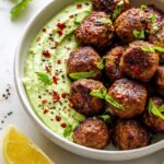 This Spicy Lamb Meatballs with Green Dip recipe offers a delicious blend of Mediterranean flavors, combining juicy lamb meatballs seasoned with cumin, coriander, and fresh chili, paired with a creamy, herby green goddess dip made from avocado, Greek yogurt, and fresh herbs. Perfect as an appetizer or main dish, this quick stovetop recipe delivers bold flavors and a refreshing contrast in every bite.