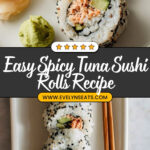 I usually finish my spicy tuna rolls with a light sprinkle of extra black and white sesame seeds for crunch and visual interest. A few thinly sliced green onions on top add brightness, and a little drizzle of spicy mayo or unagi sauce never hurts if you want to treat yourself. Of course, the classic wasabi, pickled ginger, and soy sauce combo is perfect for dipping and balancing the heat.