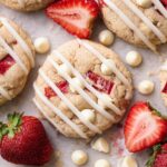 Delight in these Strawberry Shortcake Cookies, a perfect blend of sweet, juicy strawberries and creamy white chocolate chips folded into a tender, buttery dough. These cookies are topped with a delicate powdered sugar glaze, offering a nostalgic take on a classic dessert transformed into a handheld treat. Quick to bake and irresistible to eat, they make an ideal snack or party dessert.