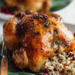 This Cornish Hens with Apple-Cranberry Rice Stuffing recipe offers a deliciously festive meal featuring tender roasted Cornish hens filled with a flavorful stuffing of cooked rice, chopped apples, dried cranberries, pecans, and fresh herbs. The hens are glazed with a sweet and tangy apple cider and maple syrup reduction infused with Dijon mustard and cinnamon, delivering a perfect balance of savory and sweet. Ideal for special occasions or a cozy family dinner, this dish combines autumn-inspired ingredients with simple roasting techniques to achieve beautifully golden, juicy hens paired with a vibrant, textured stuffing.
