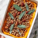 - Assemble the casserole: Spread the sweet potato mixture evenly into the oiled baking dish. Sprinkle the prepared crumble topping evenly over the sweet potato layer. Garnish with additional pecans, walnuts, and fresh sage leaves. Drizzle with olive oil for extra richness.