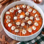 This Best Thanksgiving Scalloped Sweet Potatoes recipe features thinly sliced sweet potatoes baked in a rich and aromatic butter, brown sugar, and spice sauce, topped with toasted pecans and mini marshmallows. It’s a nostalgic and comforting side dish perfect for holiday gatherings, combining sweet, spicy, and nutty flavors with a gooey marshmallow finish.