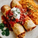 I usually pair these chimichangas with Mexican rice or a simple black bean salad on the side. Occasionally, we enjoy a crisp chopped salad with lime vinaigrette for a refreshing contrast. All of these complement the rich, hearty chimichangas perfectly.