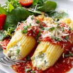 Here’s a trick I discovered to make the filling fuss-free: scoop half your cheese mixture into a plastic sandwich bag and snip a tiny corner off the end—voila! You’ve got a piping bag substitute ready to fill each shell evenly and without mess. Hold the shell carefully on one end and pipe the filling inside, then arrange the filled shells in the baking dish on top of the sauce. Doing it one at a time keeps things tidy and less overwhelming.