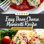 This Three Cheese Manicotti recipe features tender pasta shells filled with a rich blend of ricotta, mozzarella, Parmesan, fresh basil, and seasonings, all baked in a savory marinara sauce until bubbly and golden. Perfect for a comforting Italian-inspired meal, this dish combines creamy cheeses and aromatic herbs for a satisfying and flavorful dinner.