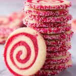 Delight in these festive Valentine’s Day Swirl Cookies featuring a beautiful colored dough layered with classic vanilla dough. Rolled into a charming swirl and coated with holiday sprinkles, these buttery, tender cookies are perfect for celebrating the season with a sweet, visually stunning treat.