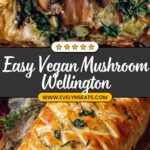 A delicious and elegant Vegan Mushroom Wellington featuring a savory mushroom and walnut filling wrapped in crispy vegan puff pastry. Perfect for special occasions or a comforting plant-based meal, this recipe combines sautéed mushrooms, onions, garlic, spinach, and vegan cheese with herbs and oats for a moist, flavorful centerpiece.
