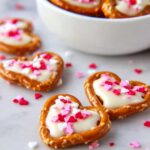 These White Chocolate Pretzel Hearts are a delightful sweet and salty treat perfect for Valentine’s Day or any festive occasion. Crispy mini pretzels filled with creamy melted white chocolate almond bark and adorned with colorful heart sprinkles create a fun and easy-to-make confection that’s sure to please both kids and adults alike.