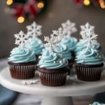These Winter Wonderland Chocolate Cupcakes are a festive treat featuring moist, rich chocolate cupcakes topped with a fluffy, blue-tinted snowflake buttercream frosting. Perfect for holiday celebrations, the cupcakes are decorated with edible snowflake toppers and shimmering pearls to create a magical winter scene.